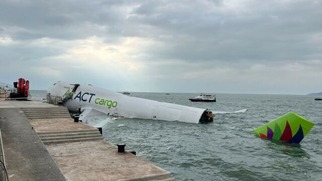 Az Emirates légitársaság ezt a járatot a török ACT légitársaságtól személyzettel bérelte. Dubajból üresen áru nélkül küldte Honkongba, ahol eddig ismeretlen okból került tengerbe. A négy fős személyzet a csúzdán sikeresen kimenekült. Erre a személyzet ki lett a szimulátorban képezve. Sajnos a biztonsági autóban ülők az ütközés következtében a tengerbe zuhantak, halottnak nyilvánították őket.